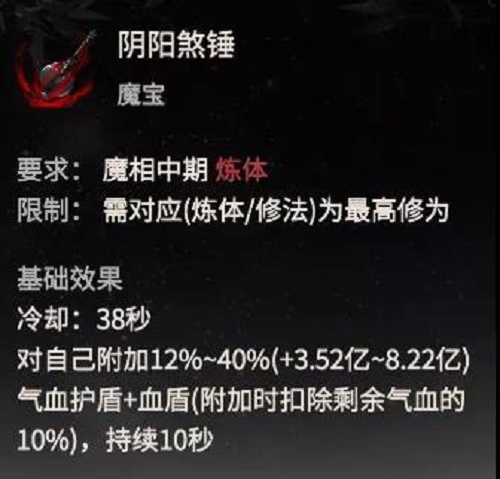 1.在大乘的仙魔法宝出来后,魔体的阴阳煞锤还是有一定可玩性。