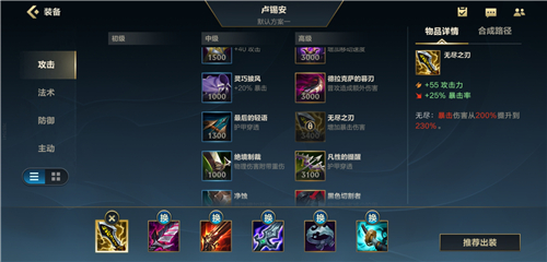 大家一上来就出无尽之刃,这套装备打的就是续航和暴击流,不停的滑步,十分帅气,其次就是饮血剑,增加攻击力,还有暴击率。