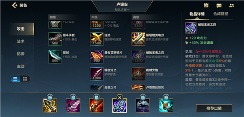 出装推荐:无尽之刃、饮血剑、破败、火炮、岚切、水银