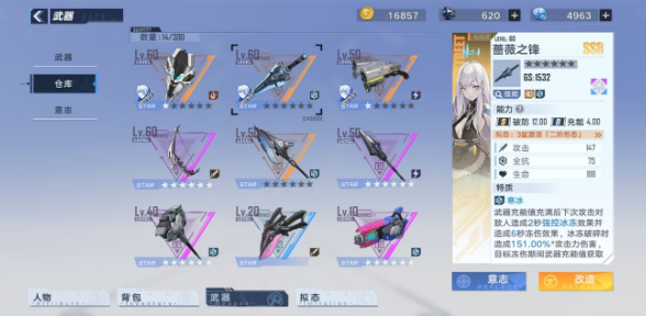 至于sr大锤了,大锤中sr唯一值得培养的武器,就是在与他这蓄力霸体和闪避普攻机制(具体见某站视频),两星盾斧=满星大锤,但其实副本中作为t只要会拉boss和抗伤害就行,所以见仁见智三个t中挑俩就行,t中输出大锤和盾斧都可,破防盾斧的闪普攻和大剑的德玛西亚转圈都行,还是看星级,我没用大锤的原因是我大锤是sr中最晚满星的没给资源