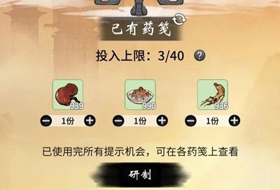 明目方:灵芝数量为玄黄的两倍(材料总合上限为8)