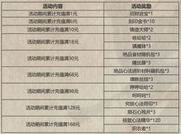 活动期间,每日完成指定任务即可获得黄金心法符印雪球、招财聚宝、绝品卷宗随机箱等丰厚奖励