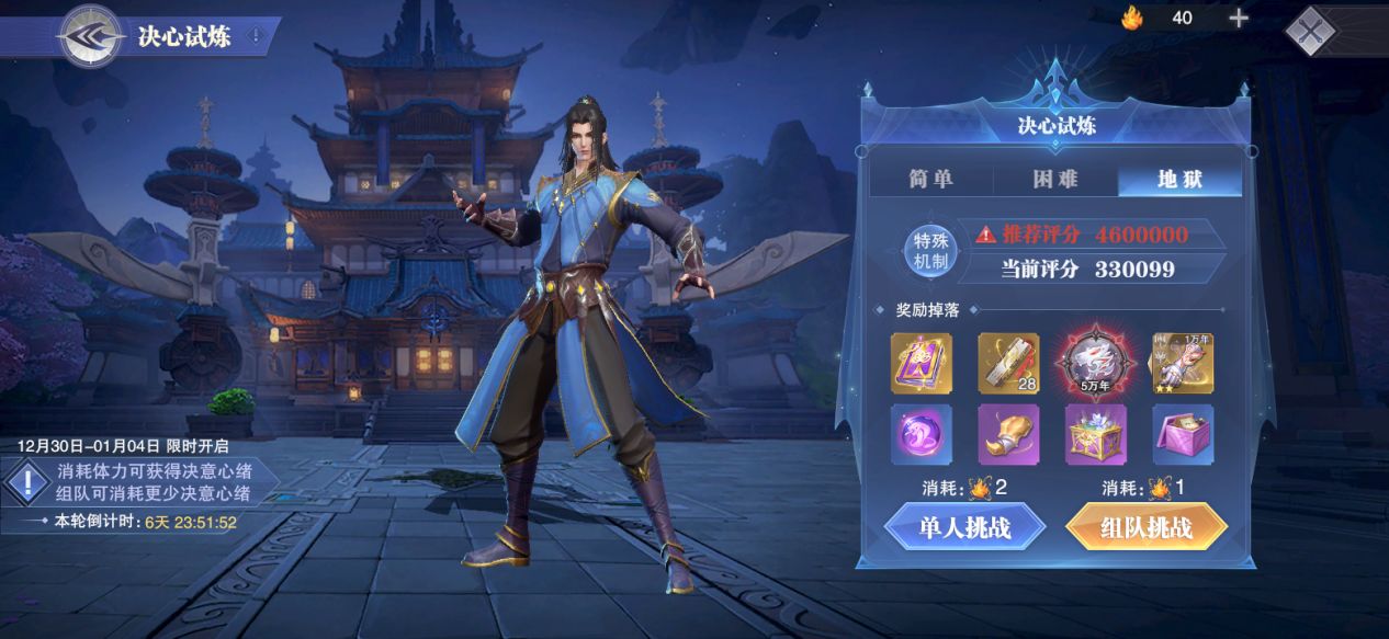 3)单人、组队参与挑战奖励相同,但组队消耗较少决意心绪,建议组队挑战。