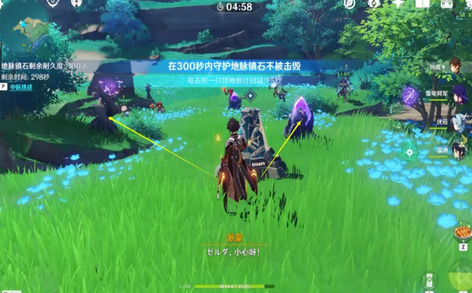 挑战要求:300秒内守护镇石不被击毁;每击败一只怪物倒计时减少5秒。