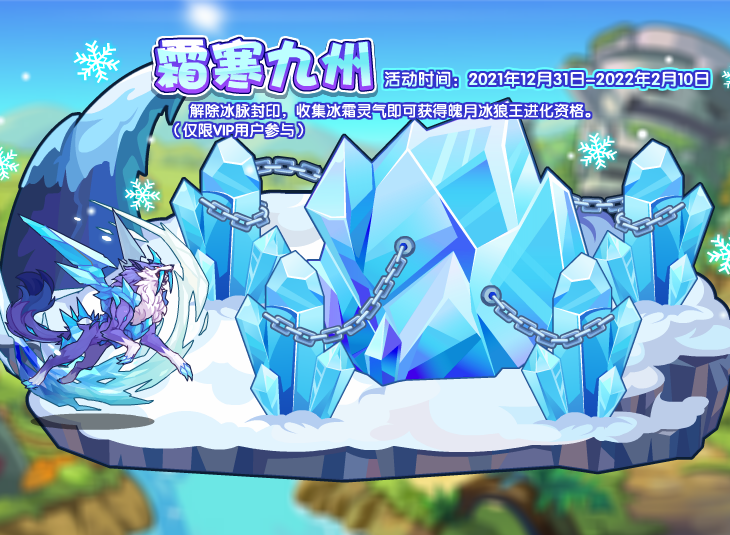 解除冰脉封印,收集冰霜灵气即可获得魄月冰狼王进化资格(仅限VIP用户参与)。
