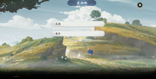 3、进入幽林小道花湖地,点击地面花瓣接取任务:采摘;地面闪光点(修为)