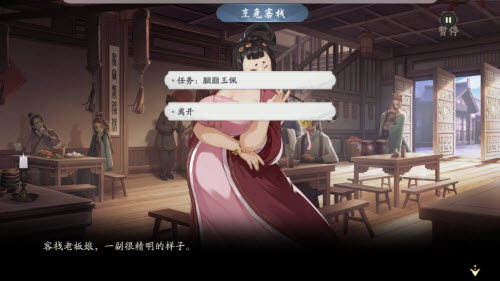 1、进入内城,进入烹兔客栈,点击老板娘接取任务:胭脂玉佩