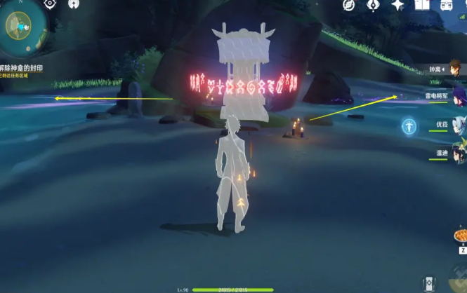 使用元素视野可以看到从神龛处延伸向远处的元素痕迹,跟着元素痕迹对应的方向去找寻可以解除神龛封印的方法。