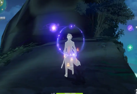 在元素视野下可以看到远处有一个元素光球,可以使用元素攻击打掉。