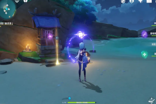 全部打掉3个元素光球后回到神龛,取得第一枚御灵珠。