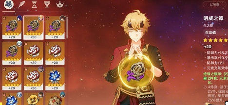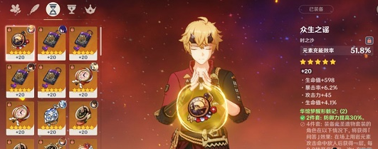 所以这里的最佳圣遗物推荐就是2充能2防御,