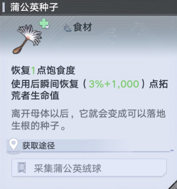 蒲公英种子是非常特殊的食材,击打蒲公英就可以获得。