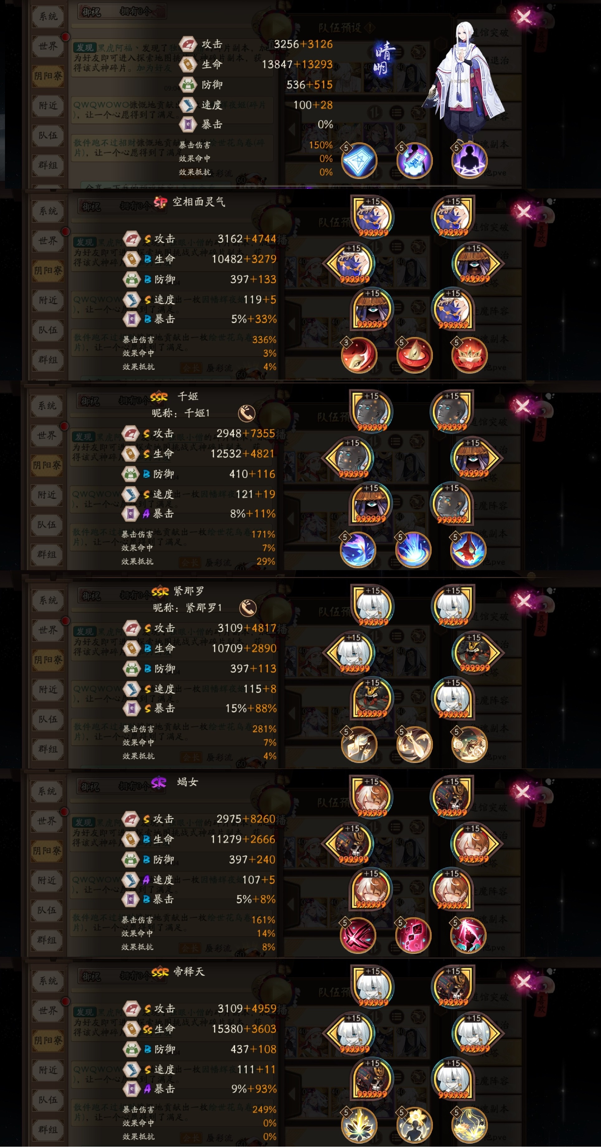 注:帝满2技能,面3技能满3级,灯满2技能,蝎最好满2.3技能,缚姬满1技能