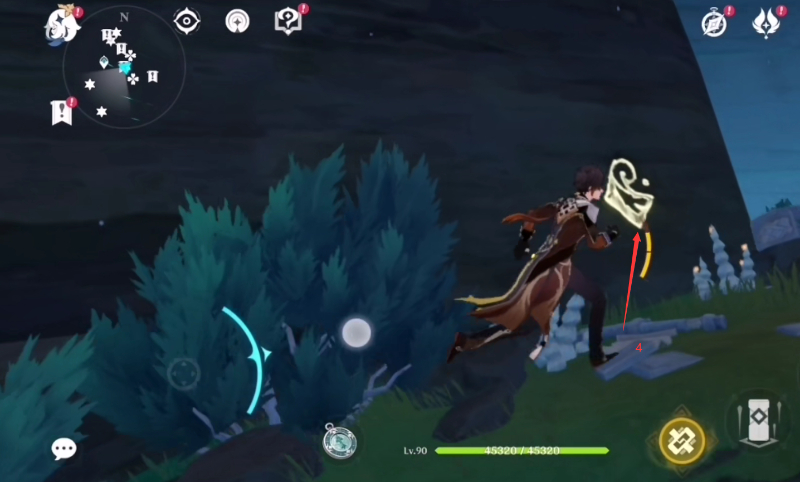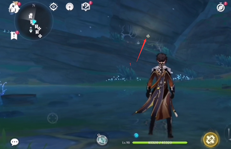 第四个在右侧的山腰偏僻位置,需要一步步的爬山,在这里要注意体力值的消耗,来到山腰位置之后向右走即可观察到。