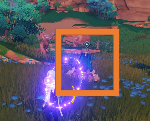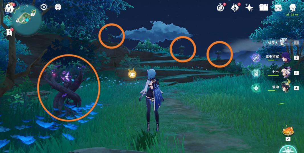我们需要使用【元素视野】攻击三处雷元素团(会出现怪物,但是用不着击败。可以直接跑。),完成之后,返回神龛取得【御灵珠】。雷元素团位置如下: