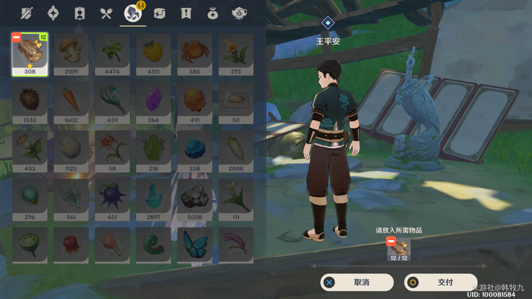 4、返回与王平安对话(需提交12根却砂木):接下来回到刚才王平安的点位,与他对话就好了。