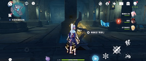 2.进入可以看见一个尽头昼夜转换器,左右俩边都有一个昼模式的机关用于操控移动墙,中间的一列墙有俩块铁栏杆