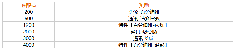 唤醒奖励: (达到一定的唤醒值即可解锁奖励)