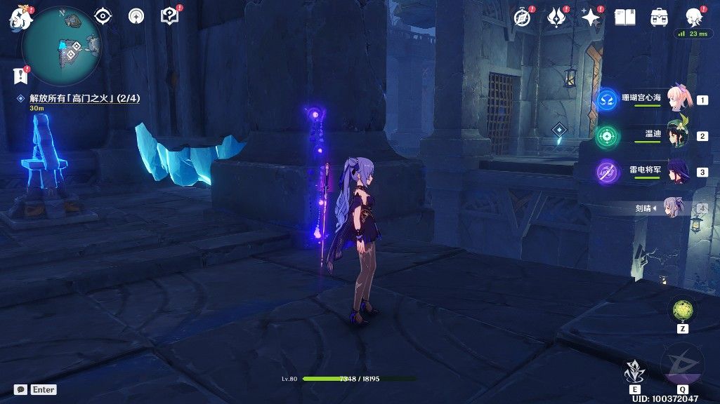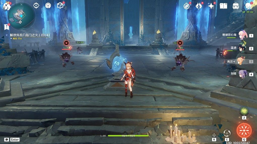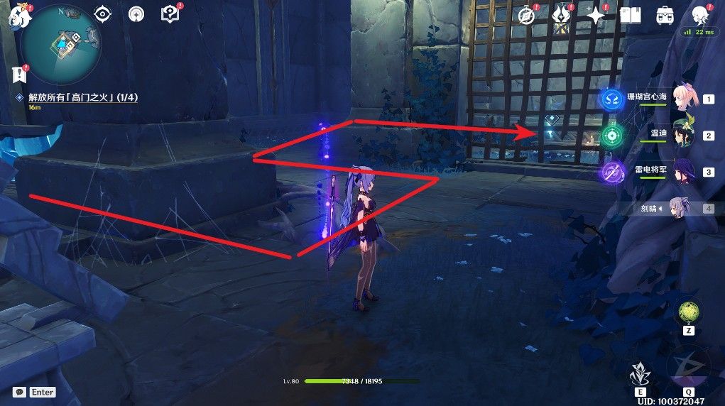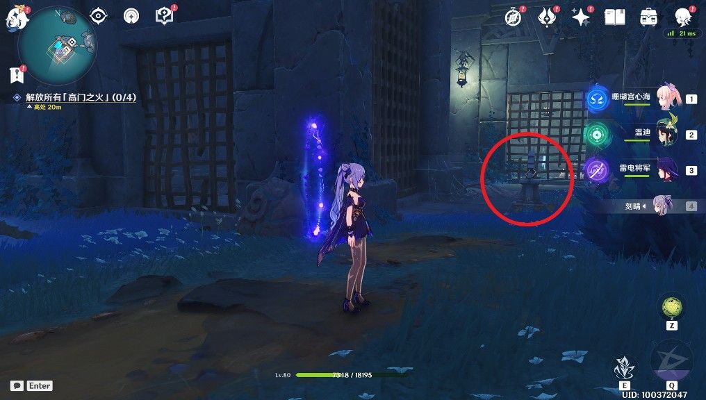 6、最后一个火炬位于西侧房间的楼顶,岩元素角色或者风元素角色垫高点就可以了