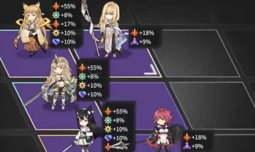 莫尔芬主要作用是为火队提升火属性的攻击力;菲奥奈虽然是sr,但是她的火队的输出是比较可观的,自身超高的闪避概率以及火属性攻击效果,配合上加拉哈德群体免伤,以及萨米基纳破甲效果,清图很快。