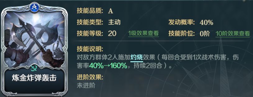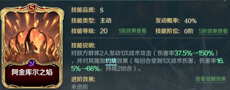 发动率与阿金库尔之焰相同,群体施加灼烧效果,区别是伤害较低,没有阿金库尔之焰时可以替代使用。