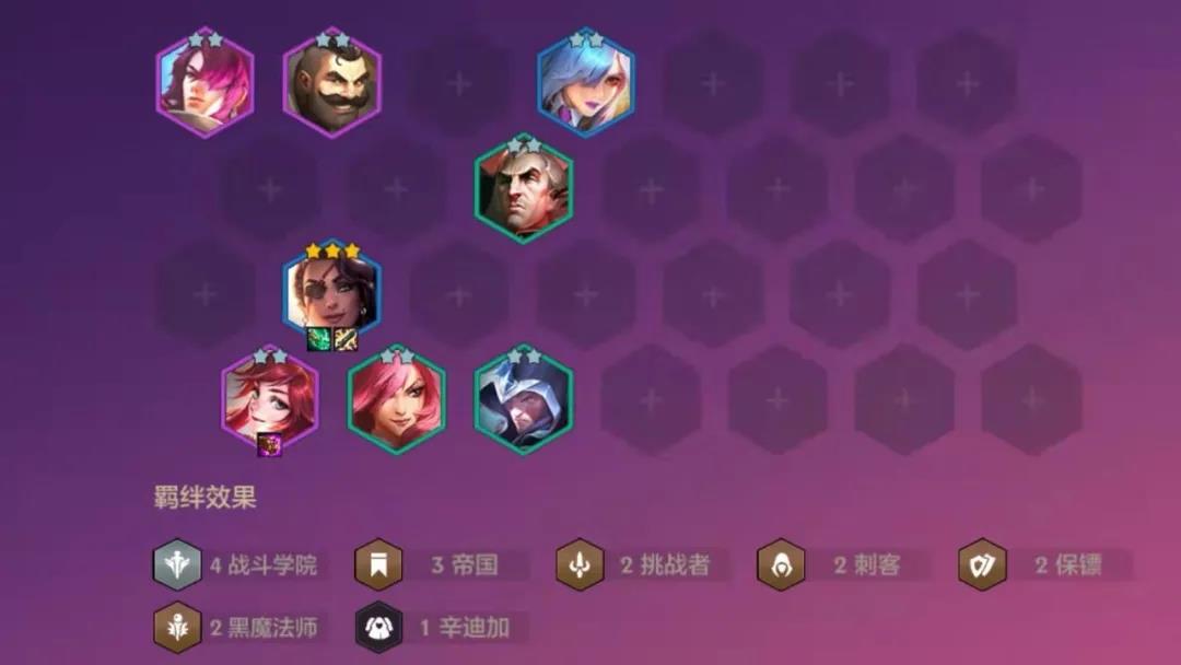 正常有帝国转的情况,八级就直接上赛恩,五帝几乎无敌,根据自己转职和海克斯决定如何变阵,非常灵活。下学院换挑战、黑魔都十分强劲。