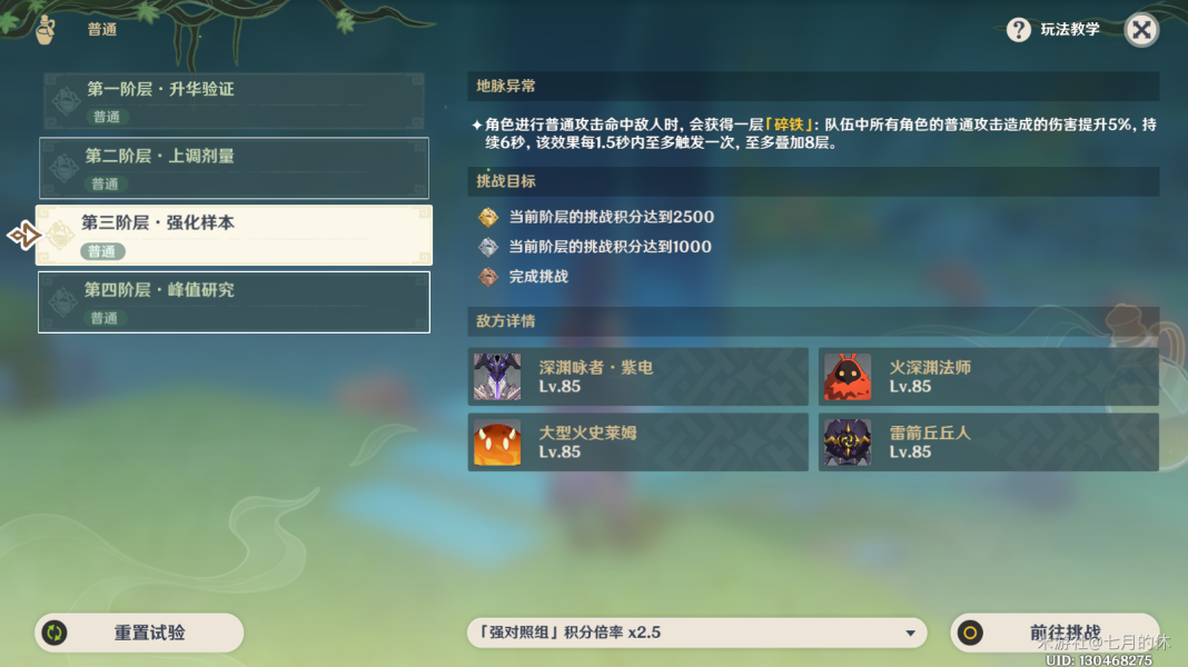 第四层,怪物物抗高,建议用元素反应队打,永冻很舒服