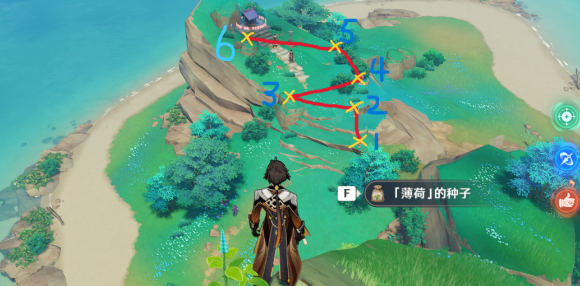 4、之后开启元素视野,就要去神龛方向上坡路上的位置去进行点亮【电灯台】了,点亮的顺序如下: