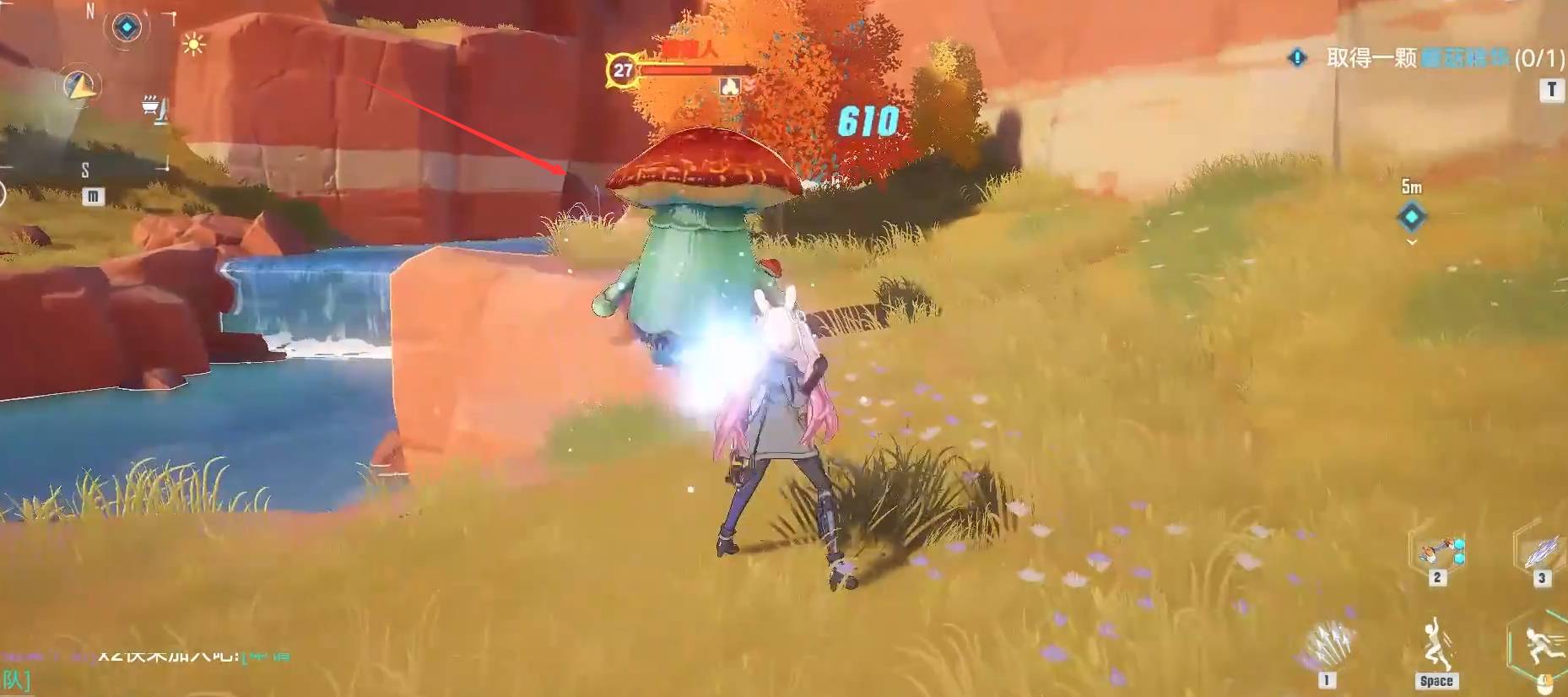 我们只要前往北部环山的河流旁边的平台上就可以看到一个蘑菇人,接着击败它就可以获得蘑菇精华回去完成任务了