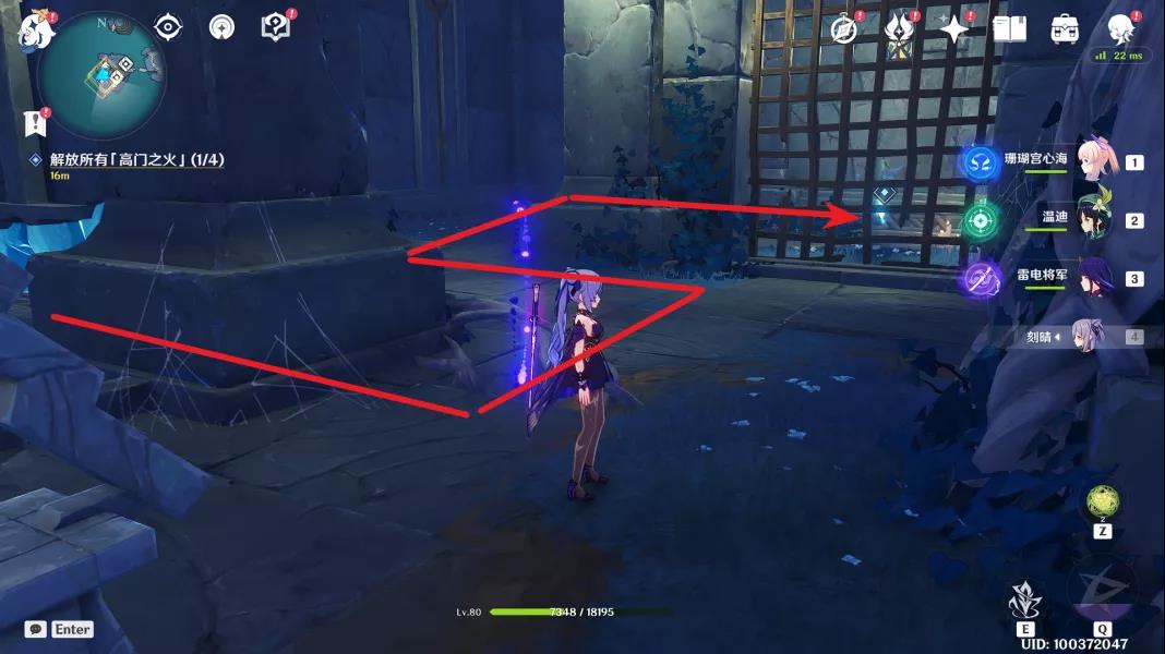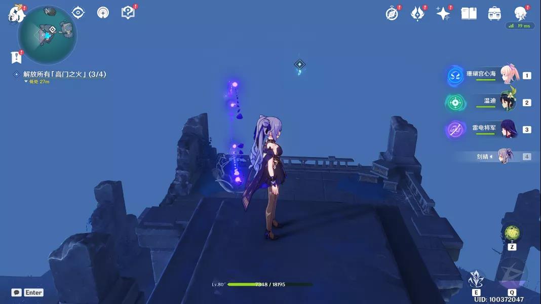 6、最后一个火炬位于西侧房间的楼顶,岩元素角色或者风元素角色垫高点就可以了