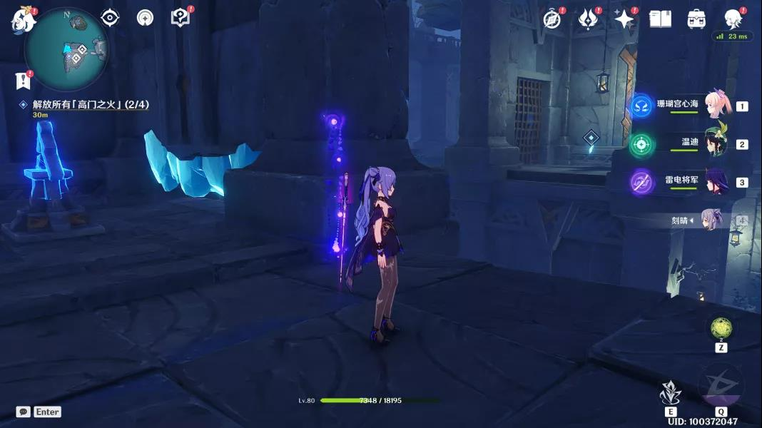 6、最后一个火炬位于西侧房间的楼顶,岩元素角色或者风元素角色垫高点就可以了