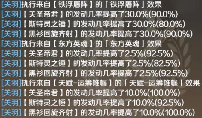 随着回合的推进,稳定大幅度的提升主将和随机副将的技能触发几率,在配合关羽这种输出上限很高下限也很低的英雄时,保证了其输出稳定还提高了打出爆炸伤害的可能性。