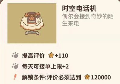 4、解锁时空电话机有评价门槛,餐厅评价必须达到12万星星,门槛还是比较高的,但是可以获得110颗星星奖励。