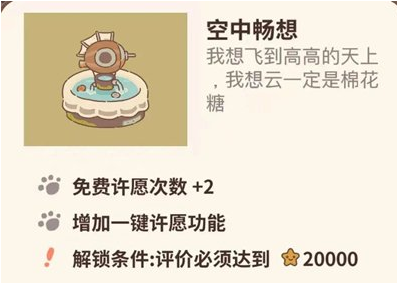 4、解锁空中畅想可以获得一键许愿的功能,不用一次一次的许愿啦,可以一次许愿每天所有免费的许愿次数,还是非常人性化的。