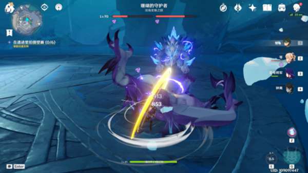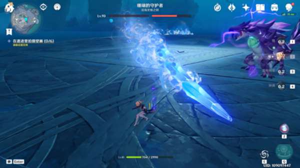 大招结束后,紫龙会与蓝龙之前一致,下潜攻击,吐球,循环,蓝龙会在水下放冰锥(与急冻树攻击方式一致),如上图