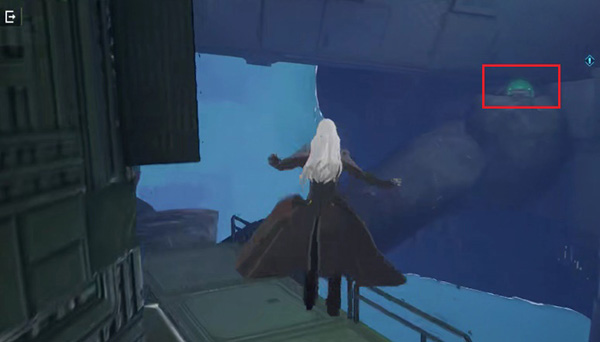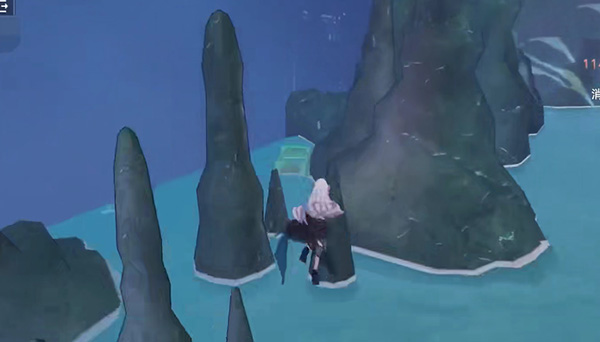 4、上来之后,往右边看,在对面的石头上可以看到第二个宝箱;