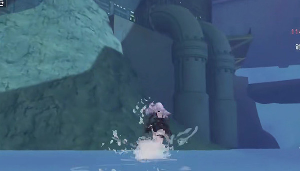 2、击败boss之后往水池的最左侧位置走,在悬崖的边上,石头后面拿到第一个宝箱;