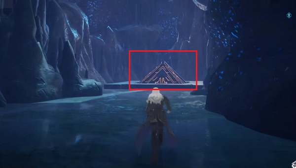 6、拿完第三个宝箱之后,往回走,从第二个宝箱的位置,往瀑布里面走,这里会有一扇门;