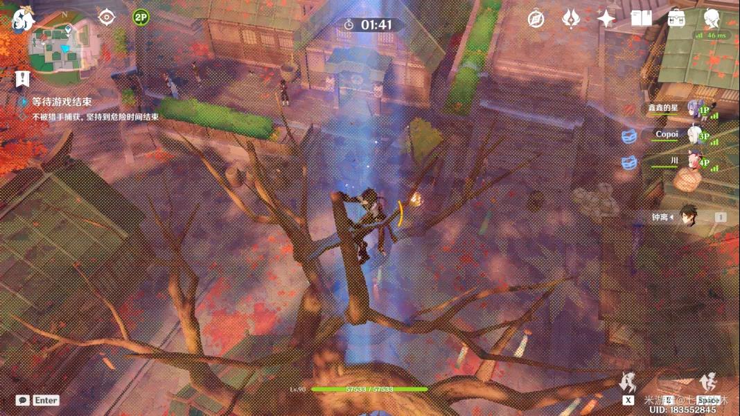 大树上,方便观察位置与逃跑,仅适用于对付萌新。