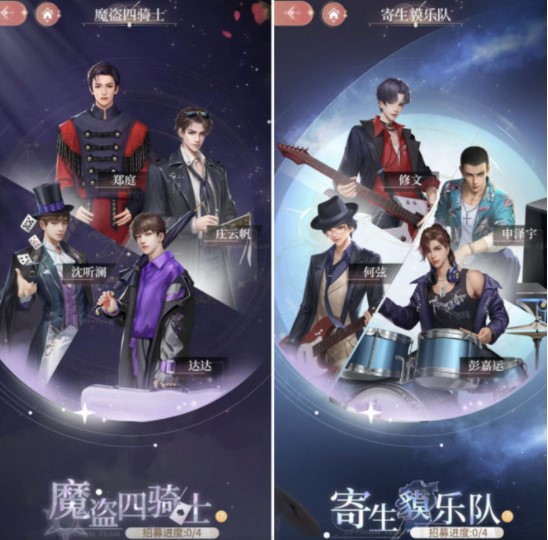 伙伴招募-达达、申泽宇(有点经济能力的搞这个)(个人觉得也是颜值比较高的)这两个藏得比较深,需要在出门的大世界里兑换,而且很难很快拿到,兑换道具目前只在冲榜活动、名媛会3级之后的兑换商店里有(扑克牌和唱片)。