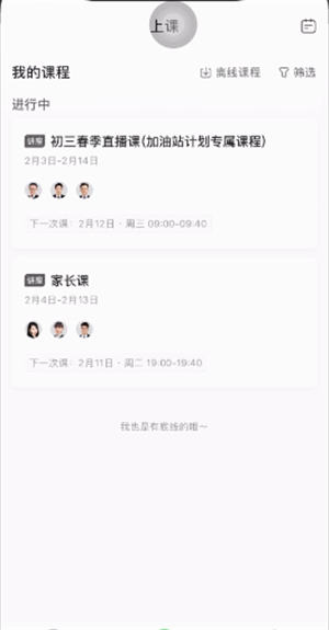 2、进入上课页面之后点击正在进行中的课程,这时在课程表下可以看到回放的各类课程,点击看回放即可成功观看回放。