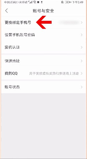 2、然后点击更换绑定手机号,输入收到的验证码之后再输入新的手机号码就可以了。