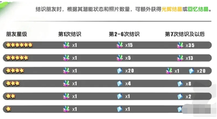 光辉结晶兑换推荐:开荒期优先兑换“萤石金币”、“经验果实”,其次兑换“絮之星”“奇遇券”,最后是“交友信”。光辉结晶后续的2、3商店也是一样,将“交友信”放在最后。