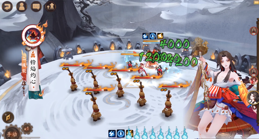 受致命伤害时触发二技能另一效果,回半血并进入冰封,增加自身防御,此时铃彦姬无法行动但有行动条可以跑条,可受到攻击,若友方将铃彦姬奶至满血时,则解除冰封复活同时无消耗放三技能。