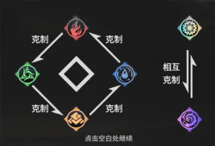 火克制风,风克制土,土克制水,水克制火。光、暗相互克制。