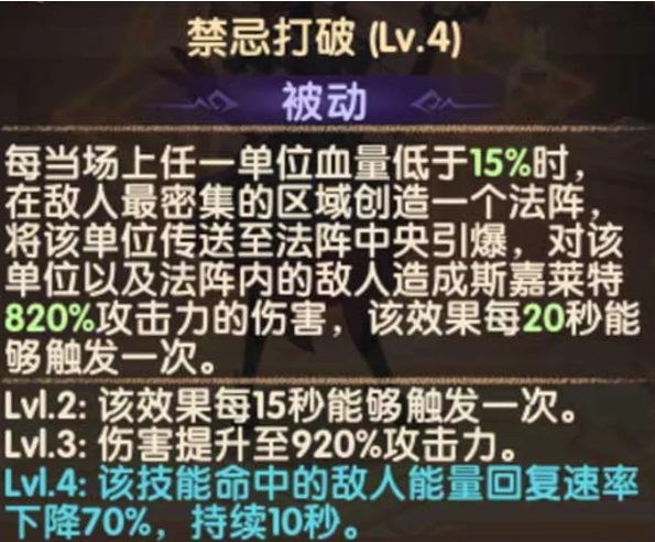 该技能虽然是被动,但需要斯嘉莱特主动释放,并且技能释放动画较长在斯嘉莱特被控制或者释放必杀技时并不会自动释放该技能。该技能无法对被传送的目标造成伤害,所以不存在击杀的问题。(怀疑是有bug,目前是有伤害数字但无实际伤害)
