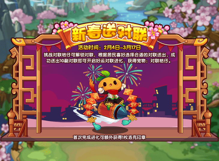 3、成功送出10副对联即可开启好运对联进化,获得宠物:对联桔仔。
