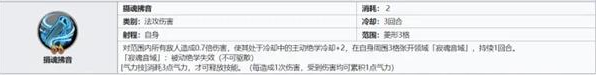 专属大招【风雷涌】:对范围内所有敌人造成0.7倍伤害,使其处于冷却中的主动绝学冷却+2,在自身周围3格张开领域「寂魂音域」,持续1回合。