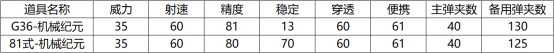 我们可以在上图中可以看到 G36机械纪元的扫射稳定高达了100,而反观81式机械纪元的扫射稳定性只有26。两把武器的不同点一眼就可以看出,G36适合扫射,而81式则适合点射。