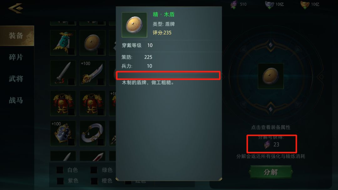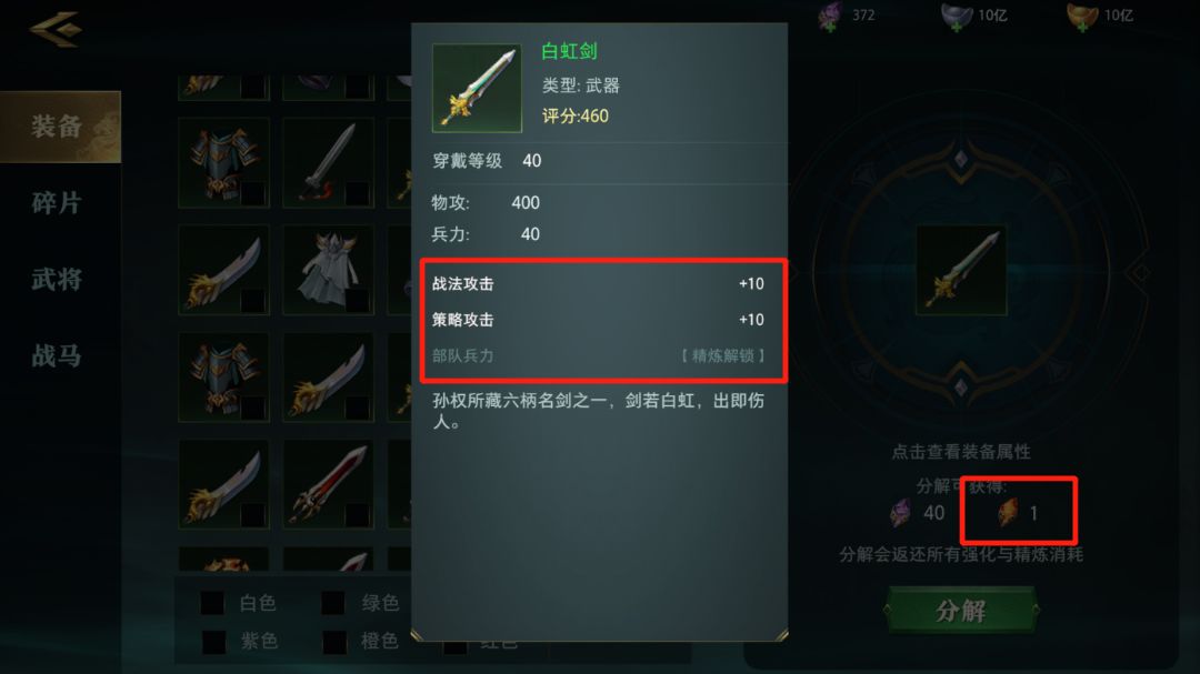 3、多跑图多刷20级以上的野怪,可以掉落装备,多余的装备可以直接分解成强化石,给那些已经在使用的装备进行强化。每个武将同部位强化等级继承,每次换装备不需要重新强化。